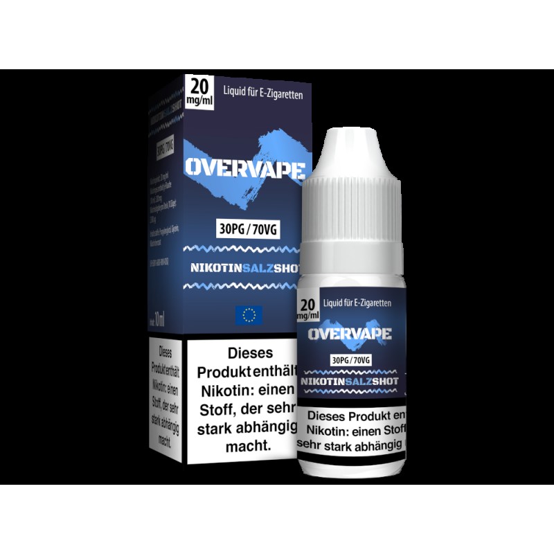 Der Nikotinsalz Shot von Overvape wird verwendet, um den Nikotingehalt Ihrer selbst gesmischten Liquids zu erhöhen und Ihren persönlichen Bedürfnissen anzupassen. Der Nikotinsalz Shot selbst ist geschmacksneutral und zeichnet sich durch eine Nikotinstärke von 20 mg/ml und einem Mischungsverhältnis von 50% PG und 50% VG bzw. 30% PG und 70% VG aus. Eine Flasche enthält insgesamt 10 ml.Inhaltsstoffe für die Zusammensetzung 30PG/70VGPropylenglycol (30% PG), pflanzliches Glycerin (70% VG), Nikotinbenzoat
