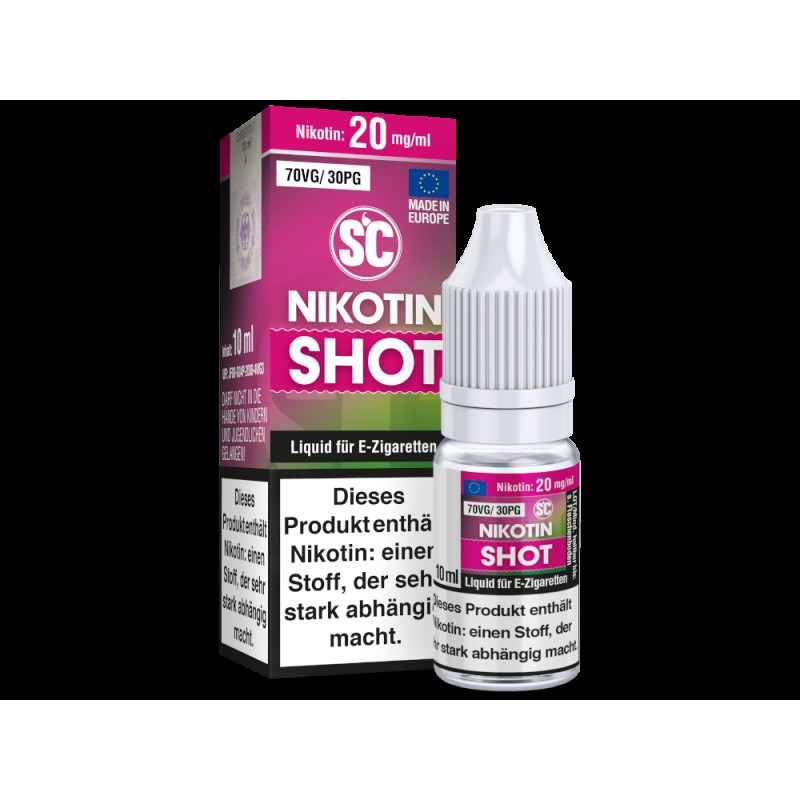 Erhöhen Sie den Nikotingehalt Ihres Liquids mithilfe der SC Nikotin Shots. Die SC Nikotin Shots sind in den zwei Mischungsverhältnissen 50PG/50VG und 70VG/30PG und den Nikotinstärken 3 mg/ml, 6 mg/ml, 9 mg/ml, 12 mg/ml, 18 mg/ml und 20 mg/ml erhältlich.