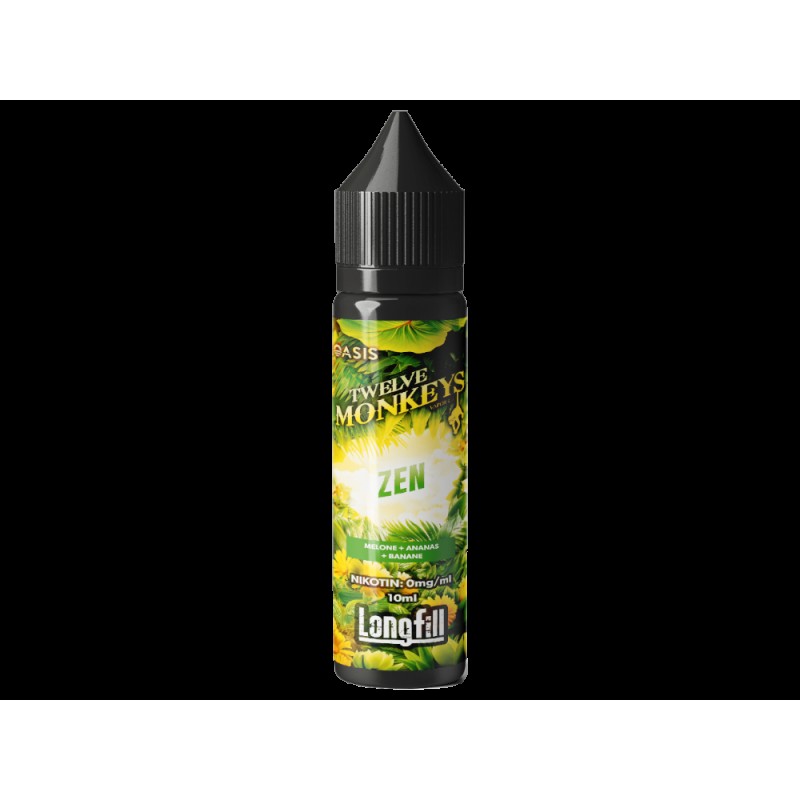 Das Twelve Monkeys Aroma Zen ist ein Longfill-Aroma. Hierbei erhalten Sie pro bestellter Packung eine 60 ml Flasche, die 10 ml des Aromas enthält. Bei Aromen gilt es allgemein zu beachten, dass sie höher konzentriert sind und daher nicht pur gedampft werden sollten. Das Zen Aroma schmeckt nach Melone, Ananas und Banane.Auszeichnung gemäß CLP-Verordnung (EG) Nr. 1272/2008Stärke/Option | Piktogramme | P-Sätze | H-Sätze | EUH |
