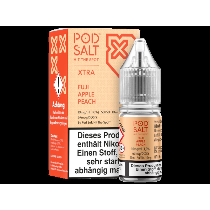 Das Fuji Apple Peach Nikotinsalz Liquid von Pod Salt X schmeckt beim Dampfen nach Apfel und Pfirsich. Sie erhalten pro bestellter Einheit eine 10 ml Flasche mit 10 ml Inhalt. Das Nikotinsalz Liquid können Sie mit 10 mg/ml oder 20 mg/ml Nikotin dampfen. Es ist für den direkten Gebrauch in Ihrer E-Zigarette geeignet.Auszeichnung gemäß CLP-Verordnung (EG) Nr. 1272/2008